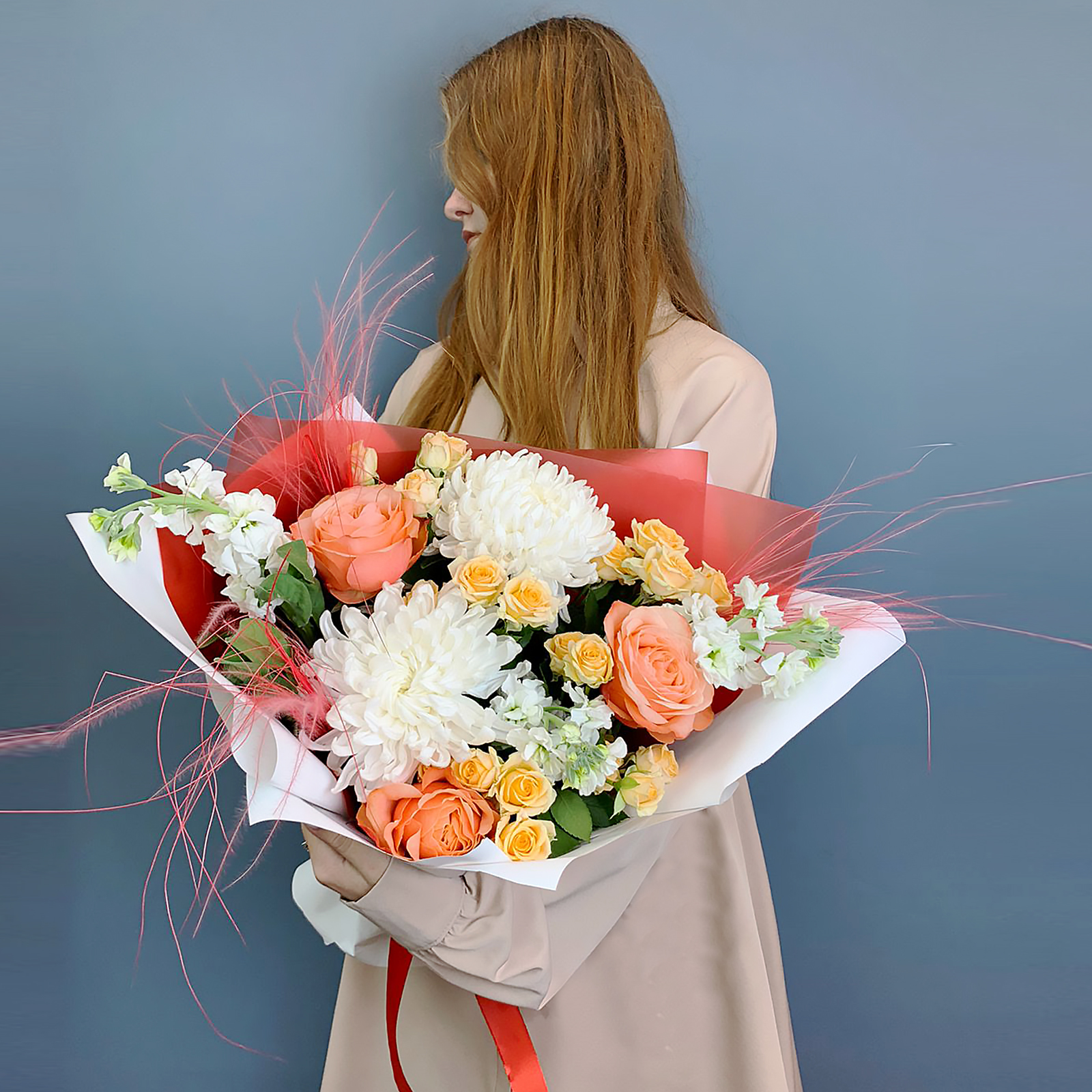 Чтобы букет радовал дольше, поставьте его в глубокую вазу с прохладной водой и обновляйте срезы стеблей каждые два дня. Держите вдали от прямых солнечных лучей и отопительных приборов. Подарите радость: цветы на дом с доставкой в день заказа.